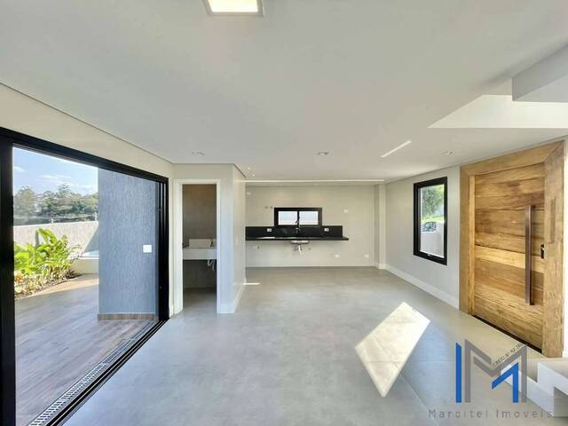 Previous Next Chác Vale do Rio Cotia - 3stes, contemporânea e integrada DESCRIÇÃO DO IMÓVEL:Casa contemporânea integrada, impecável de manutenção, com bom acabamento.Localizada num Bolsão Fechado dentro da fazendinha. Portaria e ronda interna feita por empresa de segurança armada.Rua arborizada e tranquila, sem saída.Terreno em leve aclive.Portas e janelas externas em alumínio branco e vidro, na TV e quartos com persianas.Pisos em porcelanato, laminado de madeira, cerâmica, Miracema.Projeto de gesso e iluminação.Ar condicionado.Telhado com calhas e telhas de concreto.3 acessos: social, lazer e serviço.Casa ensolarada, bem arejada e iluminada.Hall de entrada social por uma porta de madeira pivotante.Escritório com terraço e persiana.Lavabo com tampo em travertino.Escada de alvenaria com revestimento de madeira e guarda corpo de metal.3 suítes, sendo a master com closet.Banheiros com espelho, tampos de mármore, pia de vidro, box de vidro com nicho e torneira mono comando.Living para 5 ambientes integrados, voltados para um terraço, com guarda corpo de metal.Estar, lareira ecológica, jantar, bar e sala de TV com ar condicionado e varanda.Copa cozinha ampla repleta de armários planejados de qualidade, com detalhes em pastilhas, bancada em “U”, cuba e coifa inox, ótimo balcão e despensa.Área de serviço aberta ensolarada e lavanderia fechada com tanque.Quintal em aclive nos fundos, jardim com paisagismo e muito espaço para lazer.Anexo gourmet amplo ideal para festas, com churrasqueira, bancadas, pia inox, bancos e lavabo.Espaço para piscina.Espaço horta, pomar e campinho.Portão Automático.Garagem para 7 vagas, sendo 3 cobertas.Aquecimento: Solar com suporte de Boiler elétrico.Abastecimento de água: Sabesp.Armazenamento: 3.400 litros. Sendo 2.000 litros de água fria, 1.000 litros de água quente integrada ao boiler de 400 litros. R$ 1.300.000,00 Venda Chácara Vale do Rio Cotia Cód. CV961 Aceitafinanciamento